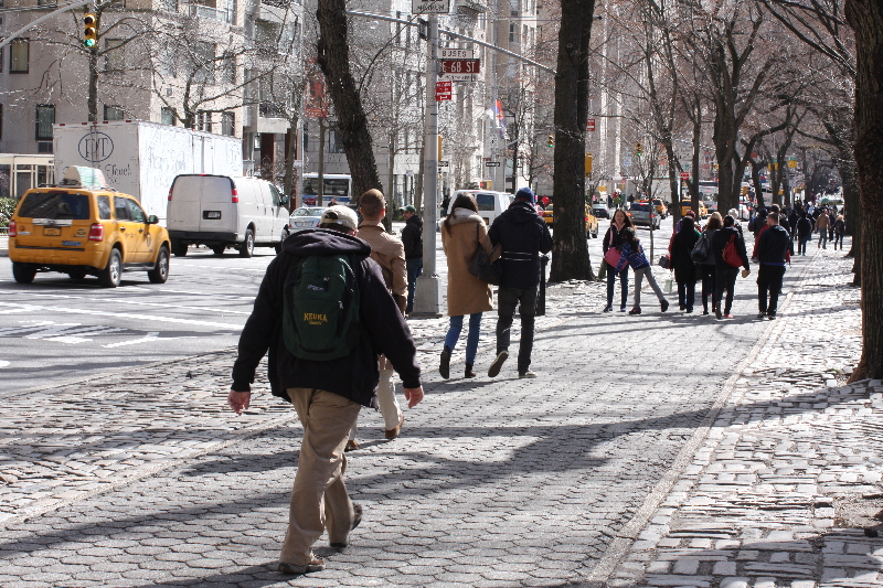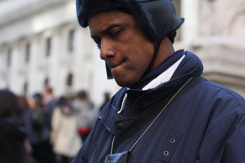 Nova York é uma cidade cujo ritmo eu custei a pegar: muito acelerado. Creio que, por um lado, por conta das telecomunicações, em especial a internet. Todo mundo anda conectado o tempo todo. Há sempre algo ocorrendo, mais além, num outro sistema nervoso. Difícil para a fotografia de rua, pois nela, o fotógrafo se oferece como um aceno do mundo não presente. Pois bem, esse mundo distante está, agora, com a rede mundial, sempre à disposição, na palma da mão de cada um e aí…, eu diria que o fotógrafo fica pra escanteio.
