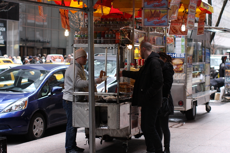Ao todo, Nova York me acolheu por uma semana. Não fui no Queens, nem no Brooklyn, fiquei mais no miolo das ruas e avenidas que se cruzam ao sul do Central Park. Frequentei os principais museus de arte, algumas galerias de Tribeca e Soho, o Centro Internacional de Fotografia; e comi muito bem, evitando os fast foods que são uma marca não só nova-iorquina, mas norte-americana – se bem que teria adorado comer um hot-dog de rua, ou um dos apetitosos kebabs para os quais se faz fila, mas a minha intolerância ao glúten não permitiu que me desse esse luxo. As delicatessens da cidade também são coisa de deixar qualquer guloso como eu maluco. A comida é certamente algo que te faz estabelecer uma relação de carinho, ou, ao menos, de maior proximidade com um lugar.