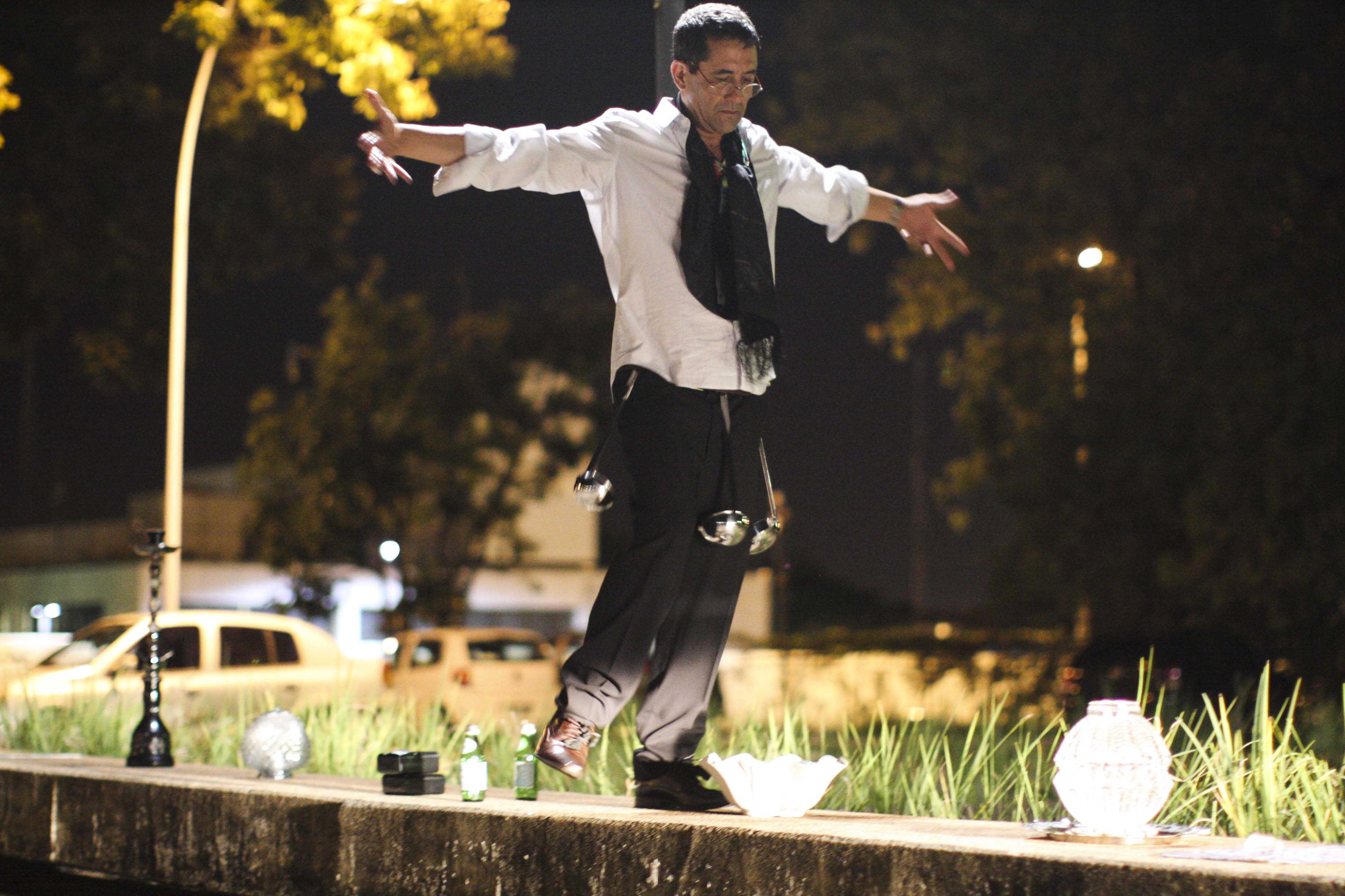 José Eduardo Garcia de Moraes, genial artista performer brasiliense lançara a convocatória, dera o sinal para que o seu séquito (e quem mais viesse, dentre o público convidado) aparecesse lá, num domingo, no final da tarde (18 horas). E lá ele estava, o séquito, eu incluído, pontualmente, para prestigiar o mestre, a respeito de quem já escrevi em duas outras ocasiões neste blog.